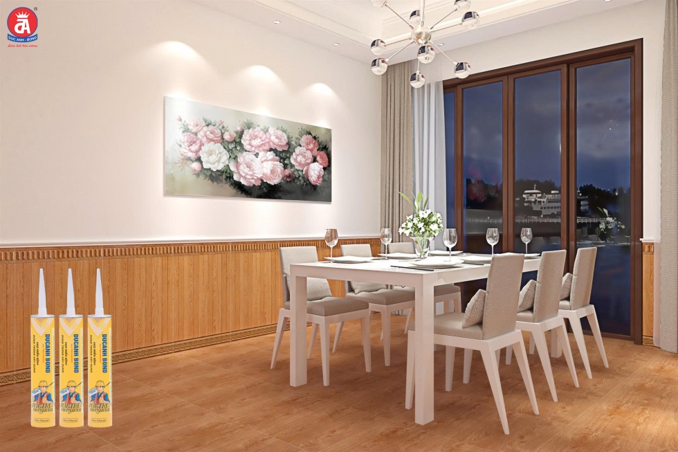 + Thi công trong nhà: Cần keo có khả năng bám dính tốt, chịu lực mạnh.