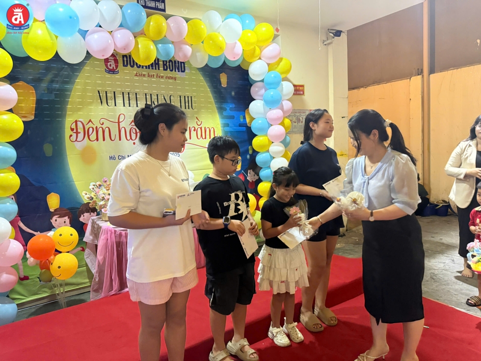 Hòa chung không khí vui tươi, phấn khởi của thiếu nhi cả nước chào đón Tết Trung thu. Tối ngày 05/10/2025, Công ty Cổ phần Keo dán Đức Anh đã tổ chức thành công tốt đẹp chương trình “TRUNG THU GẮN KẾT – RỰC RỠ YÊU THƯƠNG” dành cho toàn thể con em CBCNV. Sự kiện không chỉ mang đến cho các em một đêm hội trăng rằm tràn ngập niềm vui và tiếng cười, mà còn là dịp để DUCANH BOND trao quỹ khuyến học, khích lệ tinh thần, động viên con em CBCNV nỗ lực học tập trở thành con ngoan, trò giỏi.