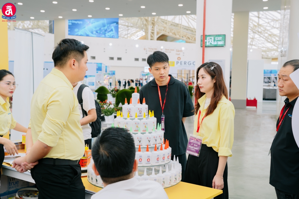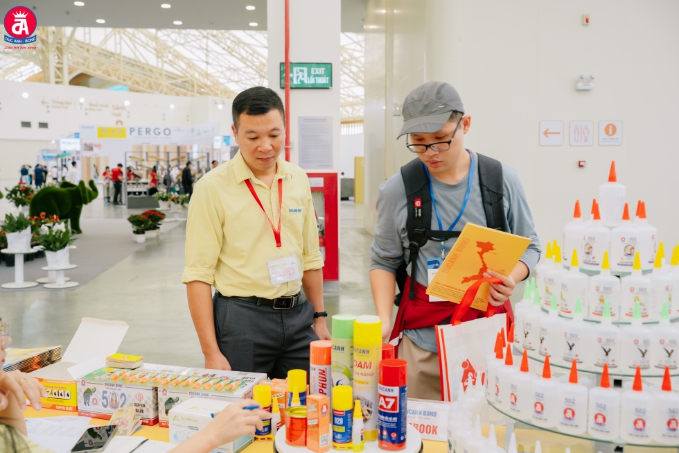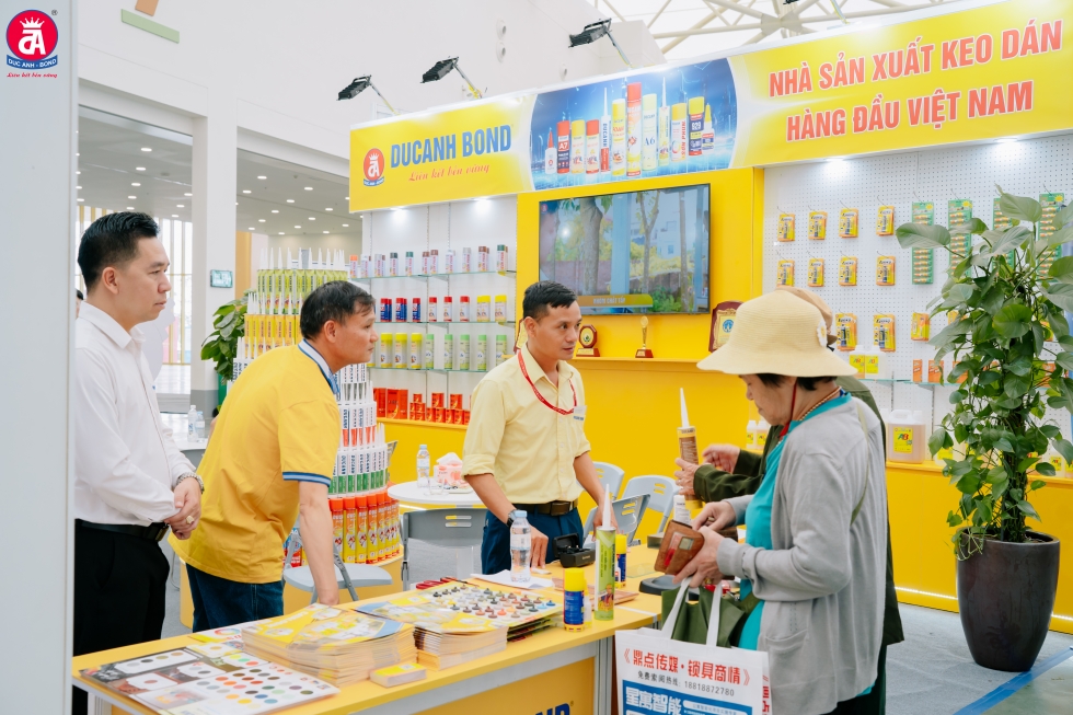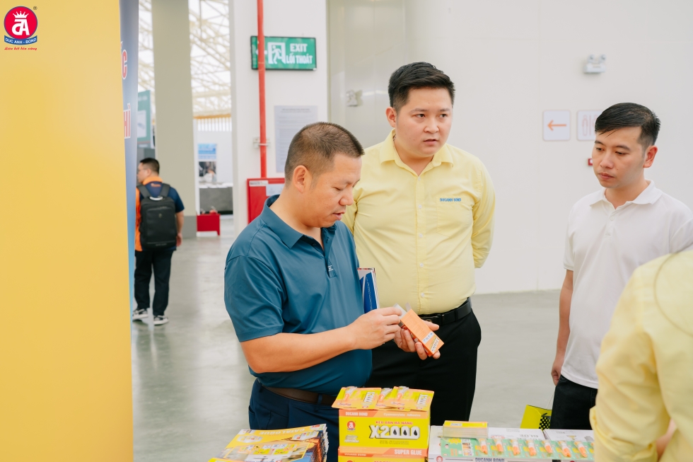 Đội ngũ nhân viên chuyên nghiệp của DUCANH BOND sẵn sàng tư vấn chi tiết, đảm bảo cung cấp giải pháp keo dán phù hợp nhất cho từng nhu cầu cụ thể của khách hàng. Thông qua các trải nghiệm thực tế, DUCANH BOND đã chinh phục khách tham quan bằng khả năng kết dính mạnh mẽ và độ bền vượt trội của từng dòng keo. DUCANH BOND xin chân thành cảm ơn Quý khách hàng đã dành thời gian tham quan và trải nghiệm sử dụng sản phẩm thực tế tại gian hàng. Sự kiện mở ra, là cơ hội để DUCANH BOND được kết nối, chia sẻ, bứt phá cùng cộng đồng thi công và nhà sản xuất trong và ngoài nước.