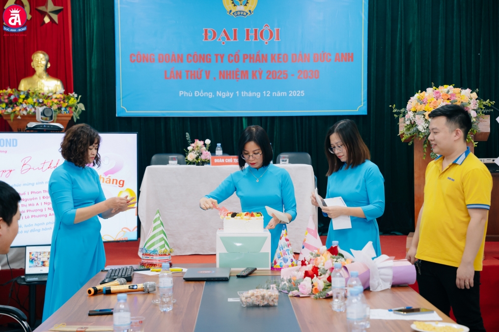 Chào tháng 12, tháng cuối cùng của năm, tháng mang lại nhiều cảm xúc nhất, cảm giác hối hả, cập rập của một năm sắp qua xen lẫn cùng rạo rực, vui mừng khi sắp chào đón một năm mới làm cho ai nấy đều cảm thấy lòng mình lâng lâng khó tả. Tháng 12 còn đặc biệt hơn nữa khi có ngày sinh nhật của các CBCNV trong đại gia đình DUCANH BOND. Chiều ngày 01.12.2025, Công ty Cổ phần Keo dán Đức Anh đã tổ chức thành công tốt đẹp chương trình chúc mừng sinh nhật dành cho CBCNV trong tháng tại phòng họp công ty cùng lời chúc mừng tốt đẹp nhất.
