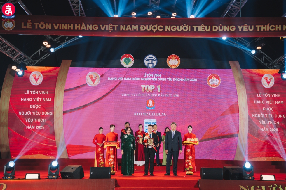 Tối ngày 29/11/2025, tại lễ tôn vinh “Hàng Việt Nam được người tiêu dùng yêu thích” do Sở Công Thương Hà Nội tổ chức, DUCANH BOND tự hào được vinh danh ở vị trí Top 1 sản phẩm được người tiêu dùng yêu thích năm 2025.